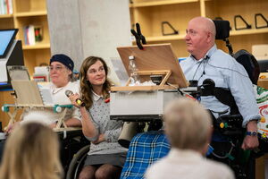 Da die GMFK stets auf der Suche nach neuen talentierten Künstlerinnen und Künstlern mit Beeinträchtigung ist, fand in St. Gallen auch ein Probemalen für Interessierte statt. Ziel der Selbsthilfeorganisation ist es, Fuss- oder Mundmalende soweit auszubilden, dass sie als Vollmitglied der Organisation von der Kunst leben können.
